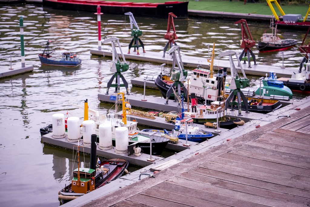 Een begin is gemaakt , helemaal in messing en printplaat .Hier al een stap verder , 1,52meter lang om een overbrugging te maken van 1,25meter in onze nieuwe haven . De totale lengte met de twee bruggehoofden en gebouwen bedraagt 2,5meter Zo moet de brug staan in open positie om de schepen uit onze haven te laten varen .Zelfs de verkeerslichten en de nodige barelen zijn al gemaakt om te werken . Een heel huzarenstuk om dit te maken en ook nog te laten werken .
